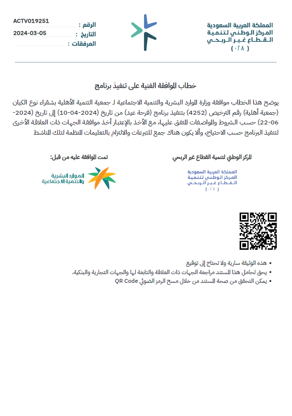 مشاركة في احتفال الأعياد وكذلك التشرط ( شروط – حوامة – قرقيعان ) للأطفال في مناسبات محلية لتفعيلها في المجتمع ومصاحب لعدة فعاليات منها عيد الفطر وعيد الأضحى ووجود مسرح ومسابقات وفعاليات للأسرة وللأطفال خلال الأنشطة المفعلة من قبل الجمعية وإبراز دورها في المجتمع.